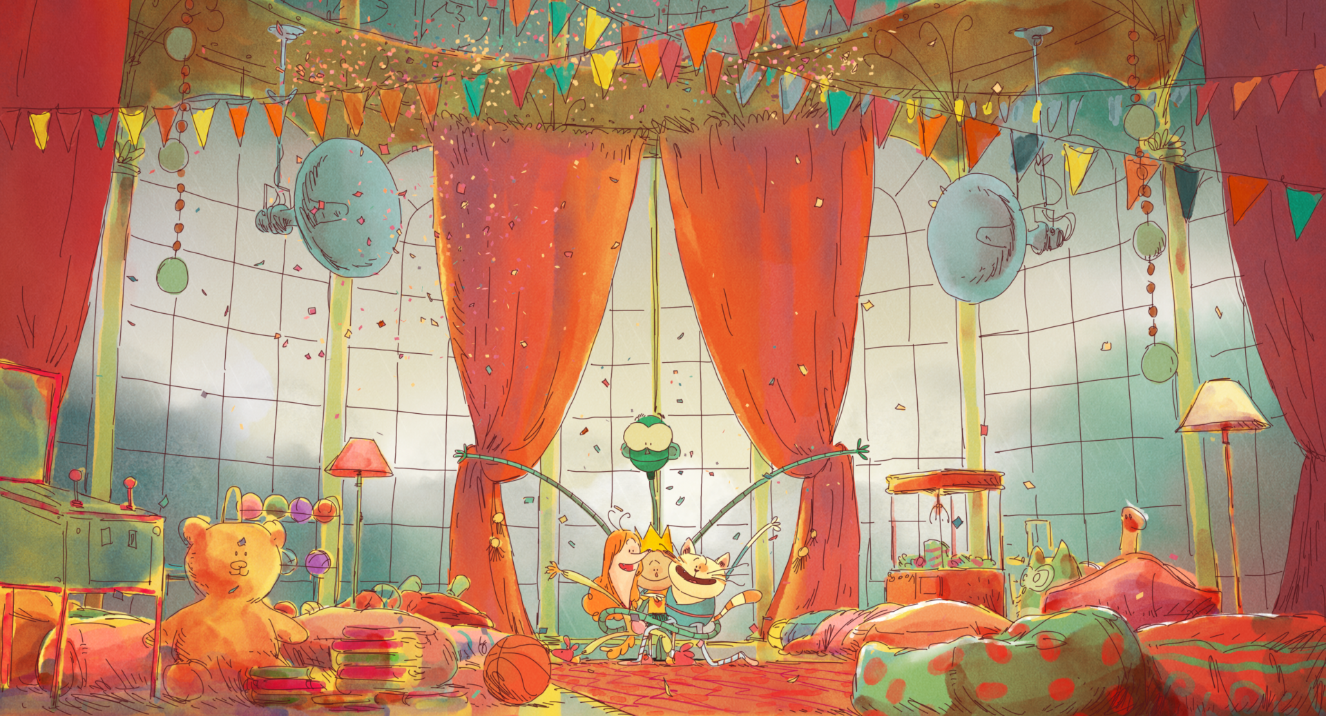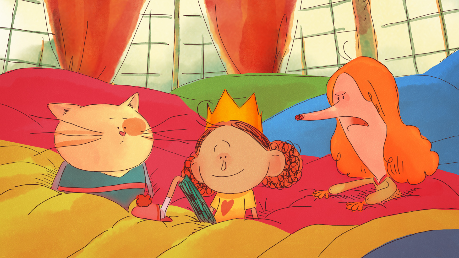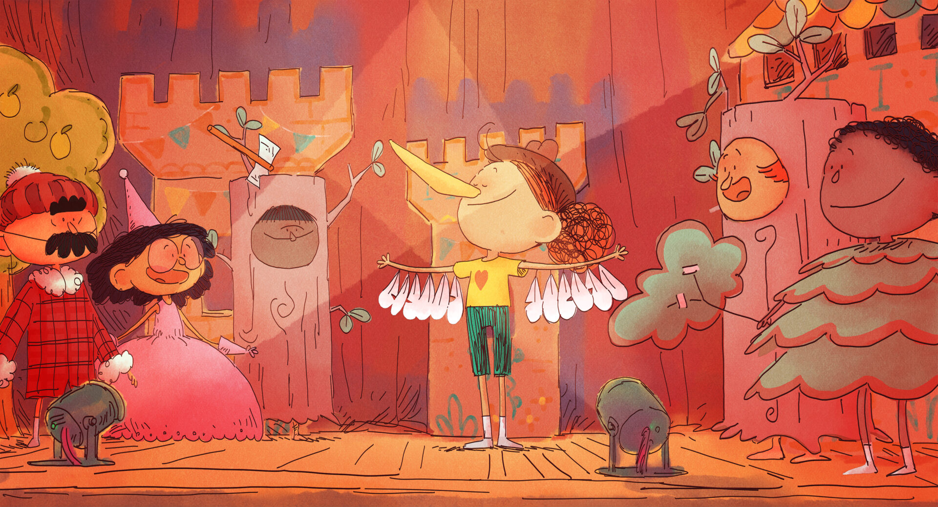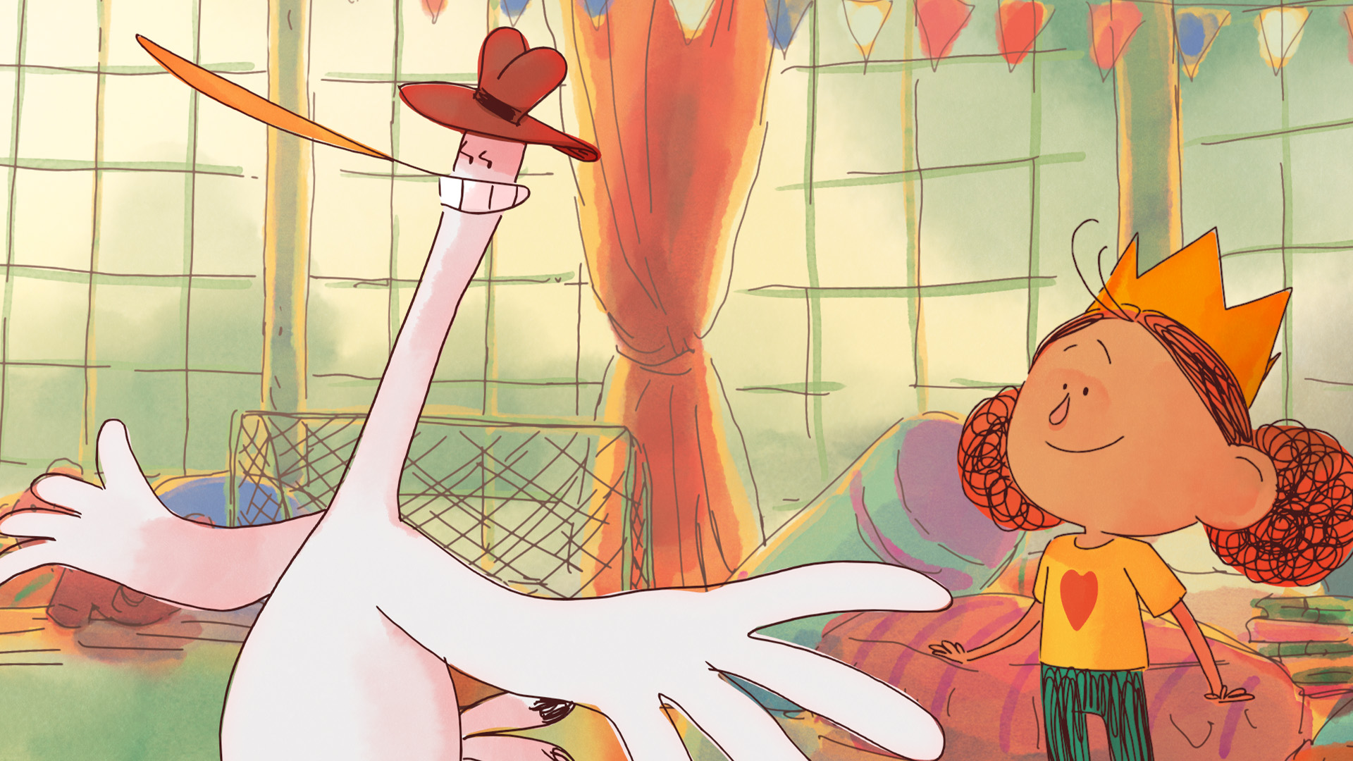 Today is the big day: Andrea stars as the Blue Bird in her school play. But stage fright strikes, and she flees backstage, where a magical cape transports her to a golden palace in the clouds. There, she meets quirky friends: Slipper, Klutz, and Light who welcome her warmly. But when a Bird reminds her of the waiting audience, Andrea must choose between safety and courage. With a little help, she learns that to fly, you have to spread your wings.