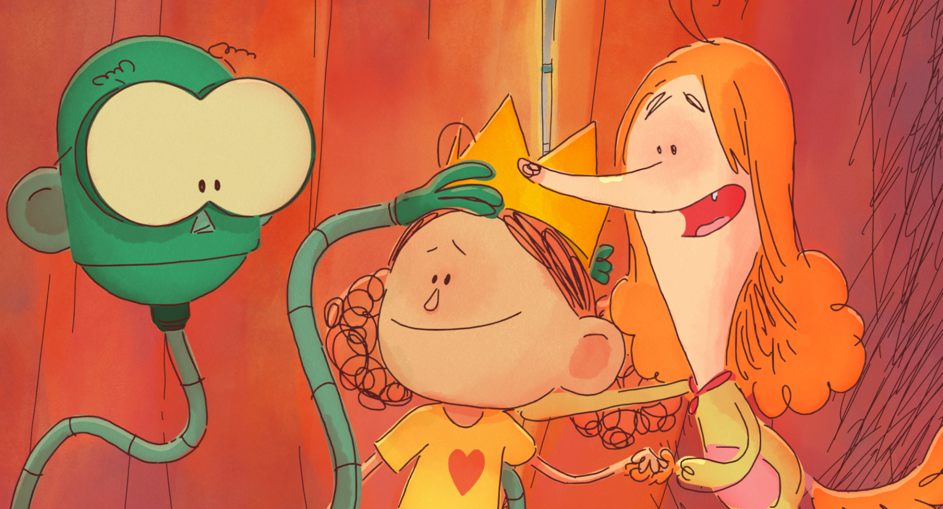 Alors que le spectacle de l’école va commencer et que les applaudissements du public résonnent, Andréa n’ose pas rejoindre ses camarades qui montent sur scène. To hide, elle file s’enrouler dans une cape de fortune dont le tissu semble interminable. Elle en ressort finalement dans un magnifique palais, entouré d’un nuage aussi moelleux qu’impénétrable.
